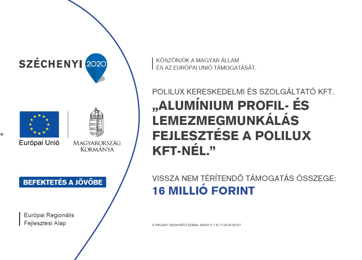 - A projekt címe: „Alumínium profil- és lemezmegmunkálás fejlesztése a Polilux Kft-nél”